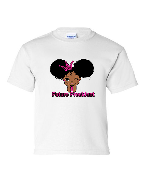 Inspirational Pretty Black Girl with Future President displayed in the front of the Tee